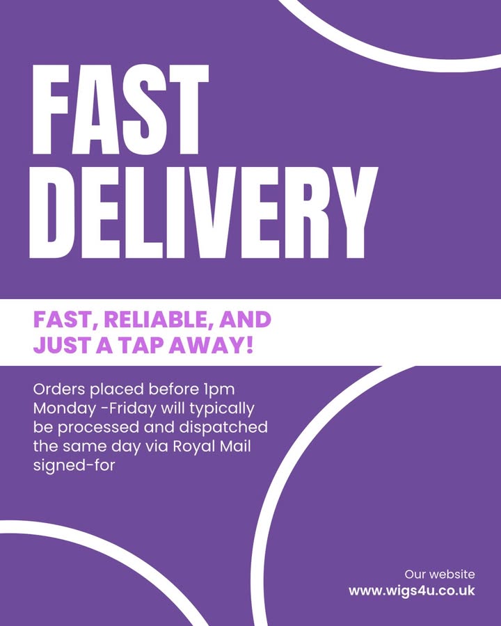 We’re delighted to offer FREE UK mainland delivery on all orders over £25! For orders £25 and under, a small delivery charge of just 95p applies (excluding Special Delivery options). 📦 Fast Dispatch, Every Time Place your order before 1pm (Monday–Friday) and we’ll aim to process and dispatch it the same day via Royal Mail Signed-For service. Please note: Weekend orders and those with out-of-stock items may take a little longer If there’s a stock issue, we’ll get in touch right away—just make sure your contact details are up to date! 💌 Thanks for choosing Wigs4U—we’re here to make wig shopping simple, fast, and fabulous!
